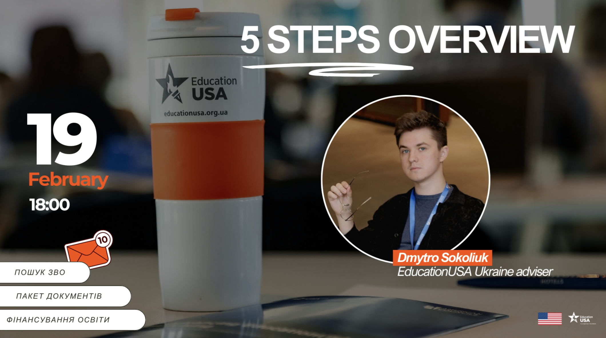 EducationUSA Ukraine adviser, Dmytro Sokoliuk, will cover 5 general steps to studying in the U.S., scholarship opportunities, exchange programs, the admissions process, and ways to finance your education. You will also have the opportunity to ask questions and receive professional guidance.