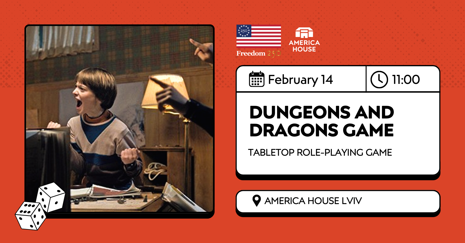 То що? Готовий/-а кинути кубик? Побачимось 14 лютого в America House Lviv!
