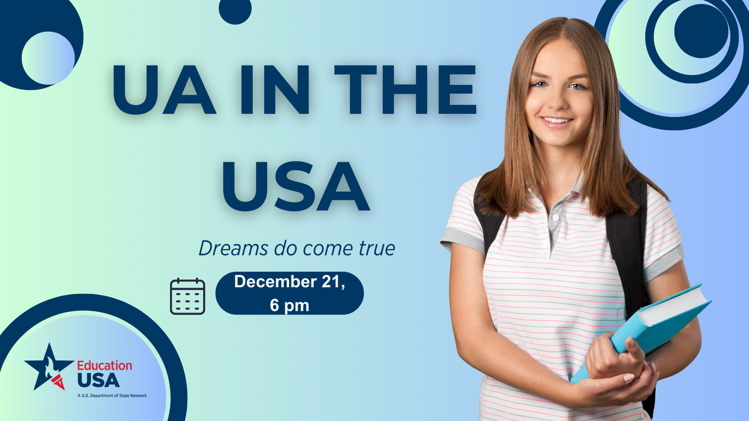 Твоя мрія про навчання в США справді може стати реальністю. Лише запитай українську студентку Університету Альфреда штату Нью-Йорк Аліну Забігайло, яка навчається на факультетах Business Аdministration та Music, та Марію Кудіну, українську студентку Університету Тафтса штату Массачусетс. Не пропусти свій шанс заглянути за куліси процесу подання заявки, написання есе, пошуку фінансування та дізнайся як це – навчатися в американському університеті.